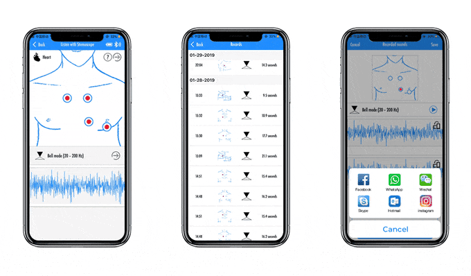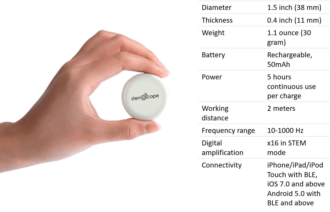 Besides the "Stemoscope" App is designed for general applications, the "BabyStemo" App is designed for expecting and new moms to listen to their babies' heartbeat and soothe their newborns, and the "PetStemo" App is designed for pet owners and vets to monitor their pets' health and enjoy their pets' soothing sounds. All the Apps are free and available for both iOS and Android. More Apps are on the way....